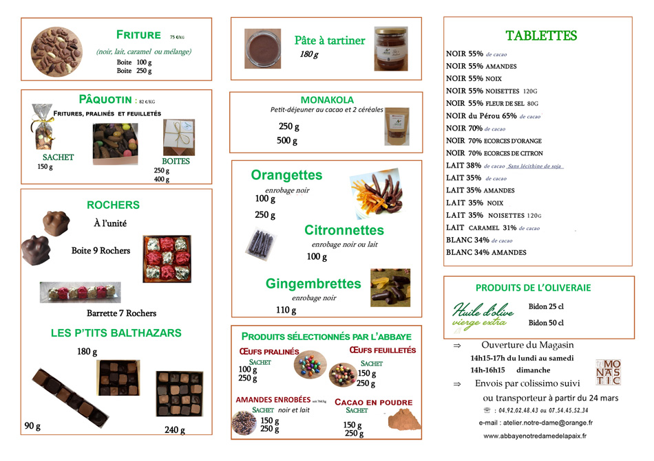 Catalogue chocolaterie